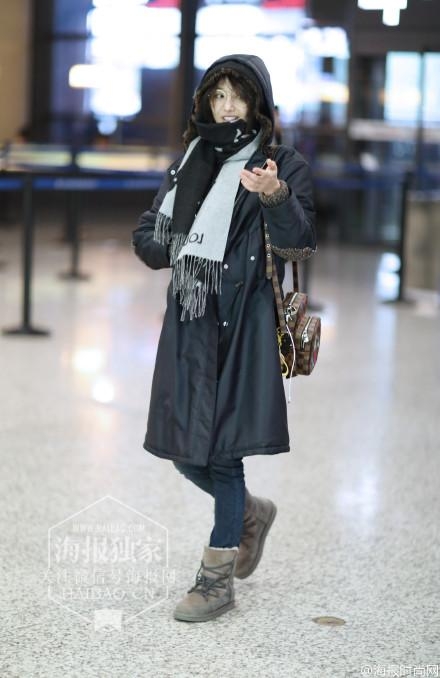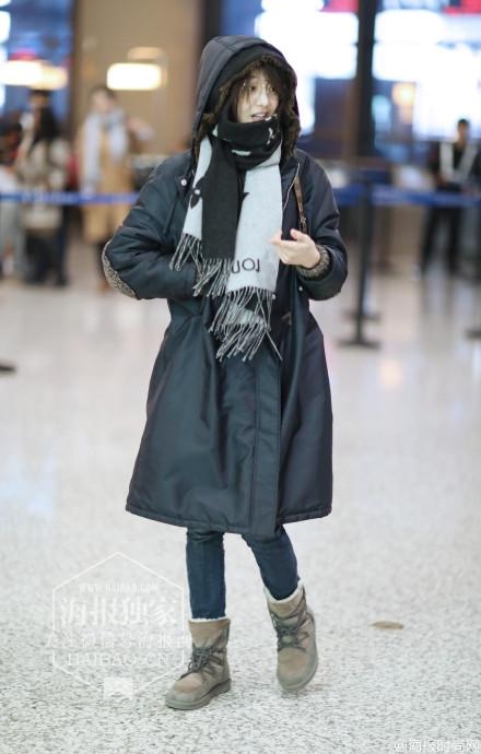 郑爽 脚踩雪地靴、穿超厚收腰棉服现身上海机场,裹LV围巾暖融融,延续爽妹子一贯的黑灰色系风格,不过斜跨的Louis Vuitton 2017春夏系列斑马棋盘斜挎包却透出一抹童趣