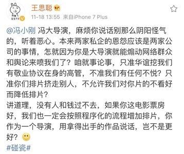 王思聪纵横微博手撕过许多明星,微博怒骂俏江南汪小菲,手撕张馨予成名前黑历史,嘲讽范冰冰为毯星,手撕黄子韬,权志龙等当红小鲜肉,当然最近一次的是王思聪微博怒怼冯小刚,一时间引来了许多吃瓜群众的围观,而且在面对娱乐圈号称小钢炮的冯小刚面前,丝毫不落下风,有理有据,也得到了许多网友的力挺,一时间也让冯小刚尴尬不已,最后惹得华谊老总王中磊亲自出面,最后才平息了这件事,可见王思聪根本不把所谓大导演的冯小刚放在眼里。