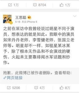 可以看到,骂遍娱乐圈的王思聪,当红女星,小鲜肉甚至是知名大导演他都丝毫不放在眼里,唯独周星驰他却从没有说过他一句坏话,也从没有提到过跟周星驰相关的话题,我想虽然王思聪平日作风高调,但对真正的艺术家,电影人还是非常尊重的,因为王思聪曾经调侃范冰冰的时候说过,在他心里演员就应该像宋丹丹,李雪健老师这样的人,所以说不定王思聪还是周星驰的粉丝呢。