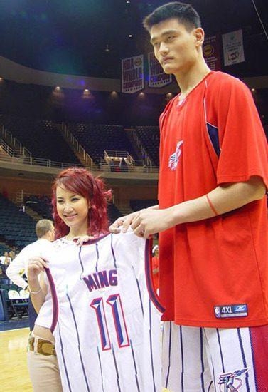 我们对姚明只能用巨人来称呼了,所以和他合影时,要不成了小巧伊人的女娃,要不就高富帅秒变矮圆挫,下面一起来看看。