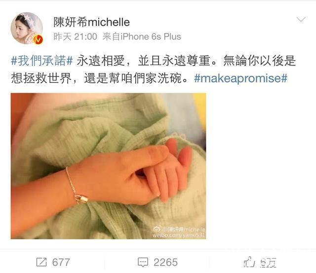 陈妍希的这句话说的还是比较绕弯子的,但是不管如何,都展现了陈妍希对宝宝的爱。微博中配的照片更是让人感动,宝宝第二次出镜,看着手指头真的比一般的宝宝长好多啊!