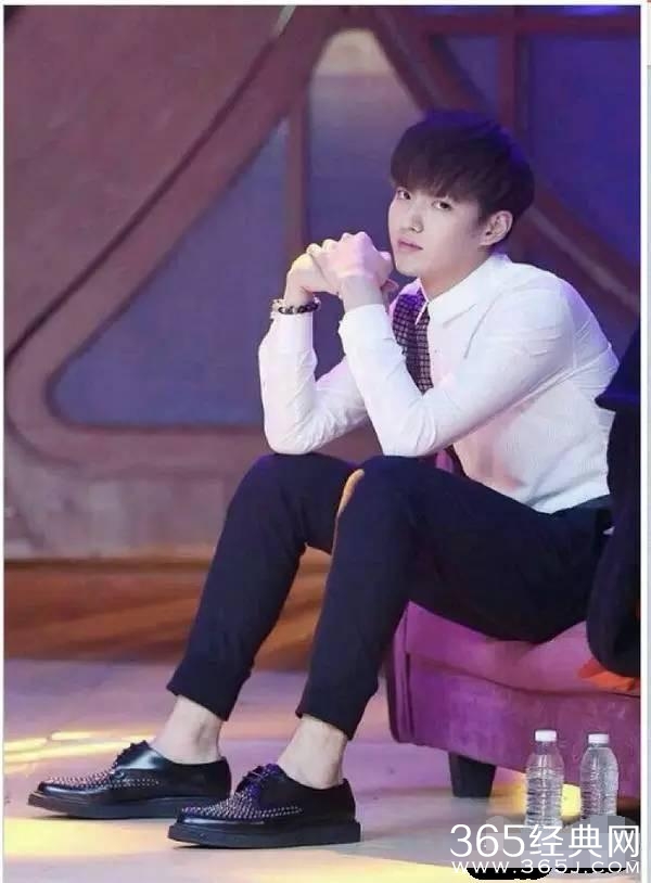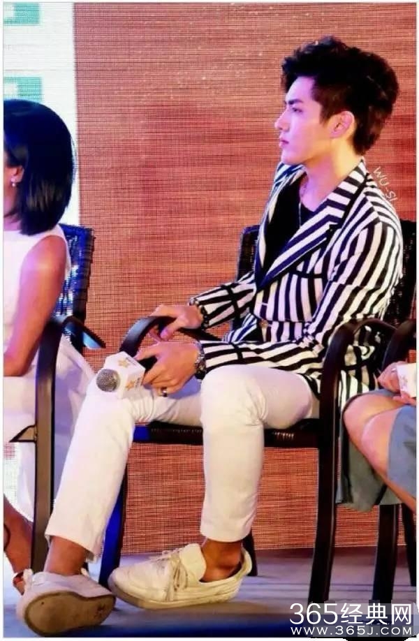 再来看看这张,这沙发对于吴亦凡是矮了一点点,吴亦凡只能努力得把腿往前伸,看表情好无奈的样子。
