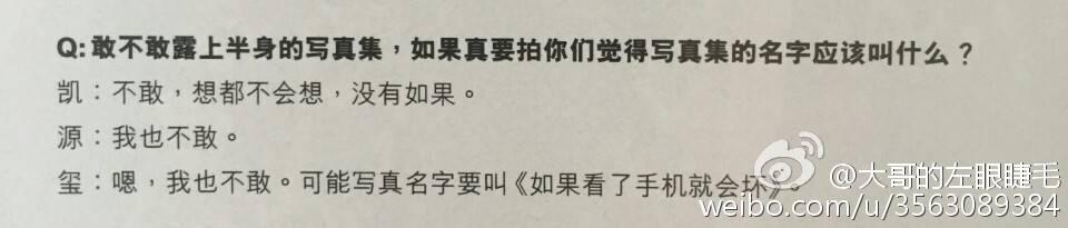 采访里问到:敢不敢拍露上半身的写真集?