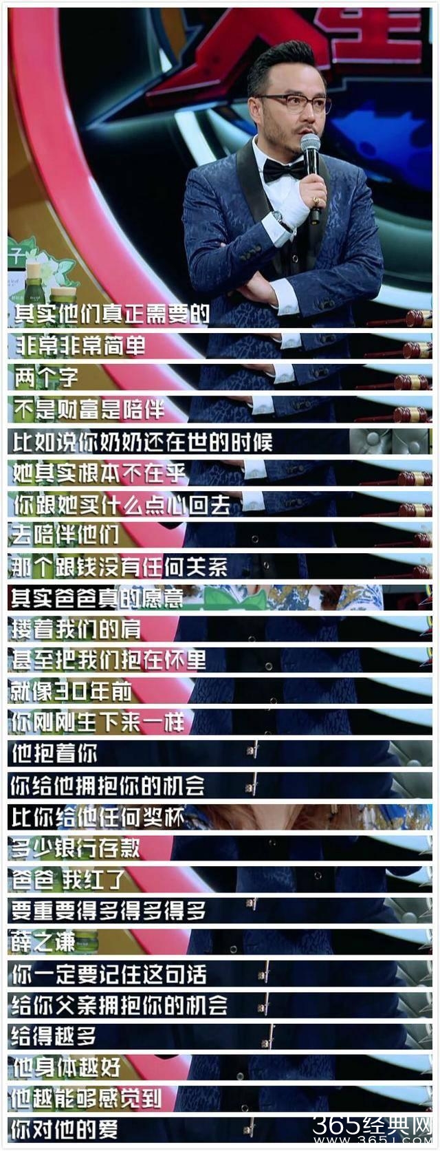 赚更多的钱,让爸爸过上更好的生活,再去完成自己的音乐梦想。当汪涵说出下面一段文字时,全场人都陷入深深的沉思之中。