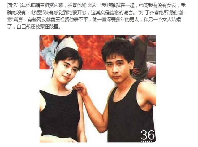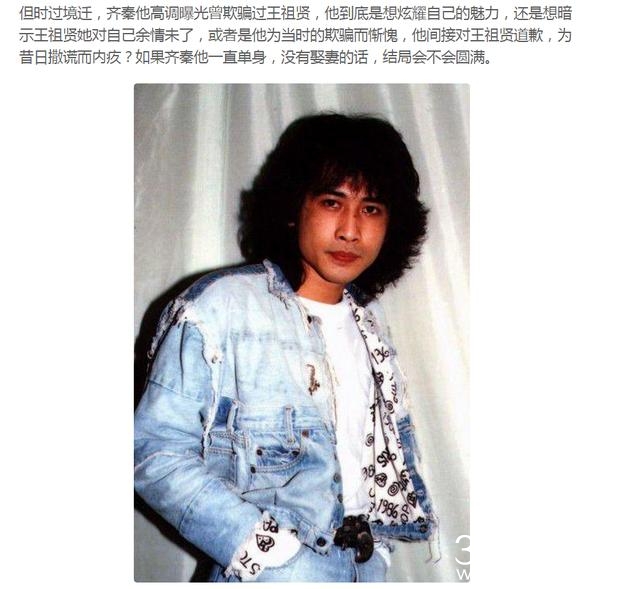 但是有人却说,王祖贤她和齐秦分手是因为王祖贤因为想傍上林建岳,所以才和齐秦分手的,然而林建岳她的父母不认可王祖贤,所以王祖贤她才去了加拿大,不管是不是真的,王祖贤她和齐秦真的是很可惜的一对儿。
