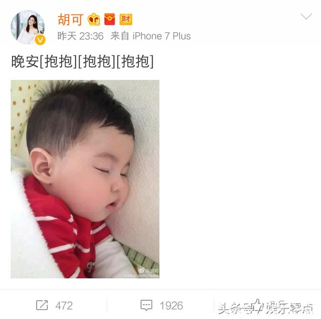 胡可深夜发微博称晚安(抱抱)(抱抱)