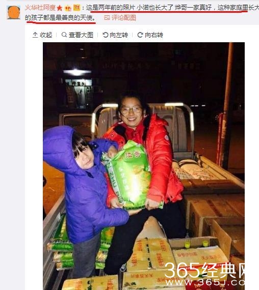 网友也晒出了2015年刘烨带着诺一给孤寡老人送煤炭和大米的照片!
