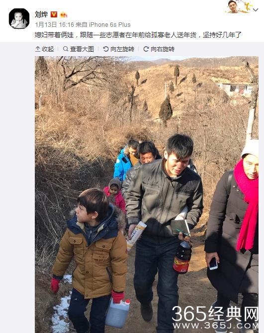 前两天社长刘烨还带着媳妇和娃儿跟随一些志愿者给孤寡老人送年货!(ps:霓娜造型非常“时尚”,厉害了。)