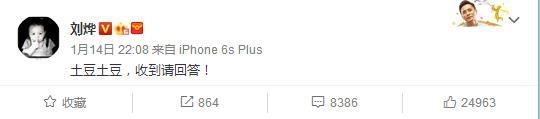 近日,社长刘烨发了一条疑似暗语的微博:“土豆土豆,收到请回答!”