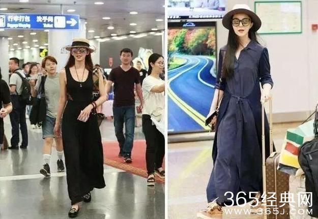 同样是长款休闲风格,范冰冰选择了牛仔系列,单调又随性,舒适自然;林志玲的黑色长裙,却处处透着一种廉价感