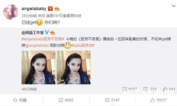 今日由杨颖主演的电视剧《孤芳不自赏》完结,怀孕待产已经全面停工的baby杨颖虽人不在江湖但还依旧发微博宣传。