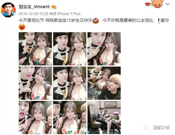 刘梓晨说:“今天是芭比节,祝我家宝宝15岁生日快乐,今天你就是最美的公主芭比,爱你。”