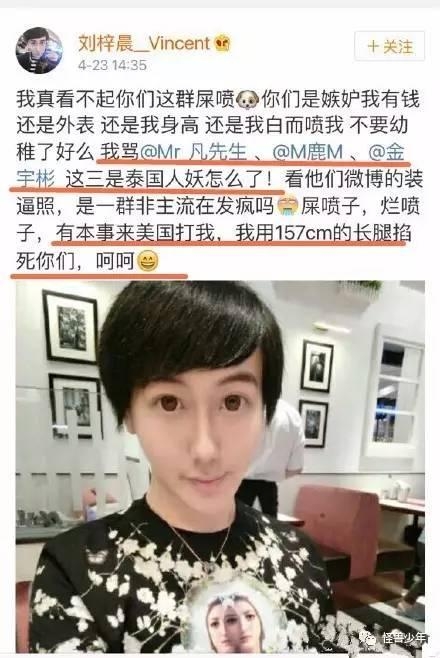 娱乐圈明星,只要整容难免会被吐槽。刘梓晨却是凭整容一炮而红,他不算明星,只能算是网红。整容的网红一大把,为啥被吐槽最多最狠的总是他?因为他除了有夸张的外表,还有惊人的言论。