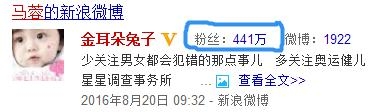 自从事件过后马蓉微博63万的粉丝,瞬间增长到441万人次!