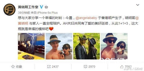 恭喜!黄晓明与angelababy升级当爸爸妈妈,17日angelababy在香港顺利产下一名男婴,升级辣妈。