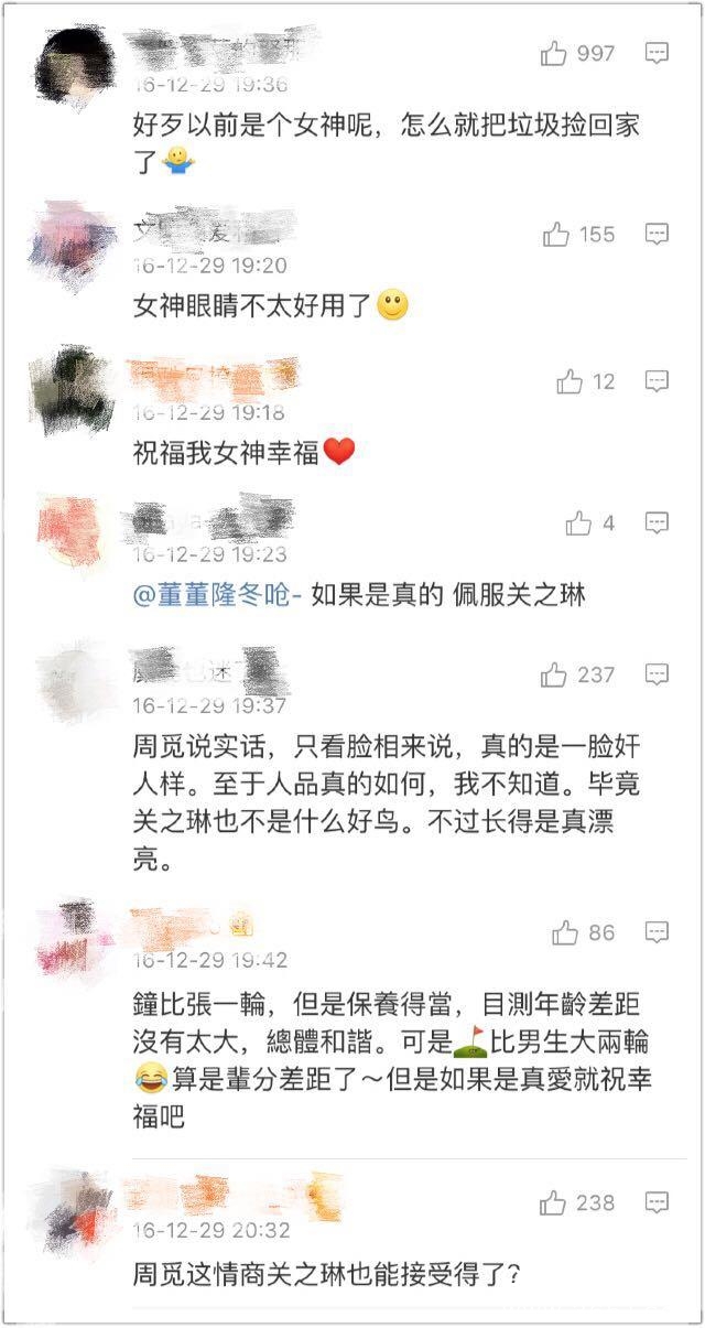 后来关之琳出来澄清,称自己和周觅不是男女朋友关系,但网友的评论大部分是这样的……