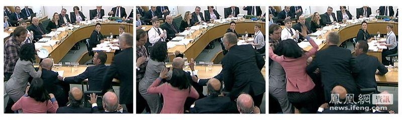 邓文迪是个神奇的女人,在她感情世界如此丰富多彩的同时,你却不能否认她和默多克也曾恩爱——2011年7月20日凌晨,在英国议会就《世界新闻报》窃听丑闻质询默多克父子时,一名男子突然从听众席窜起,手拿餐盘,跨过默多克旁边的人企图对其进行袭击。在这所有人都来不及做出反应的时候,邓身后的妻子邓文迪一跃而起,第一时间将丈夫保护在身后,并且反手给袭击者一巴掌!