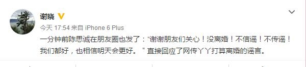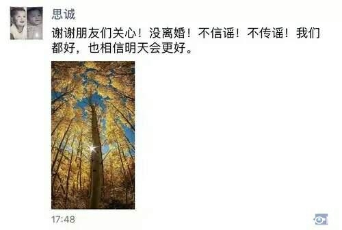 没想到事情又发生了反转,看陈思诚发的这条微信,似乎是对网传丫丫打算离婚的一个回应
