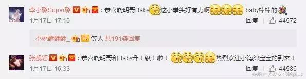 黄教主当爹,凭他的人缘自然是收到了半个娱乐圈的祝福,颖宝,陈学冬,邓超,古巨基,宋茜,李小璐,张靓颖,刘昊然,纷纷送祝福……