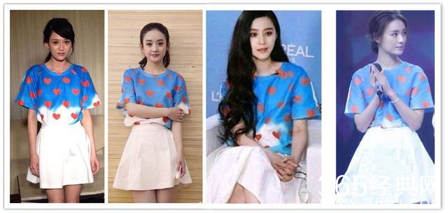 赵丽颖和我们女神范冰冰、陈乔恩、倪妮撞衫。和这么多人撞衫是一种什么样的痛苦的体验?看起来就像是一道美丽的风景。