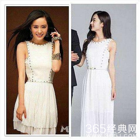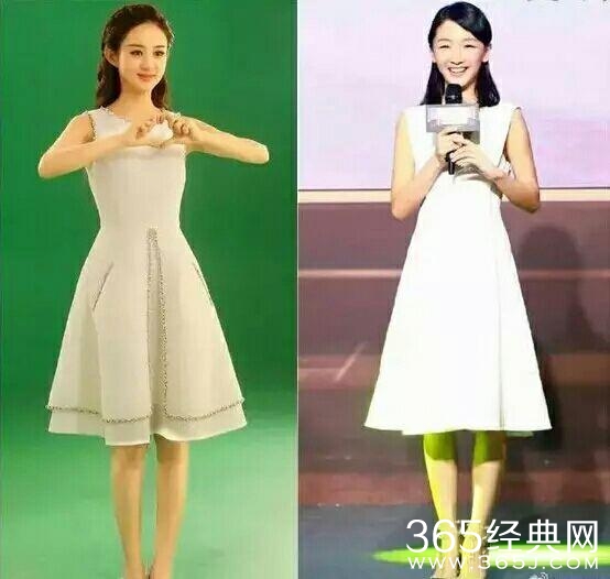 同样一条小白裙,赵丽颖选择刚好及膝的长度,优雅得体,周冬雨本来个子就小,还要穿过膝裙子,只会显腿短!