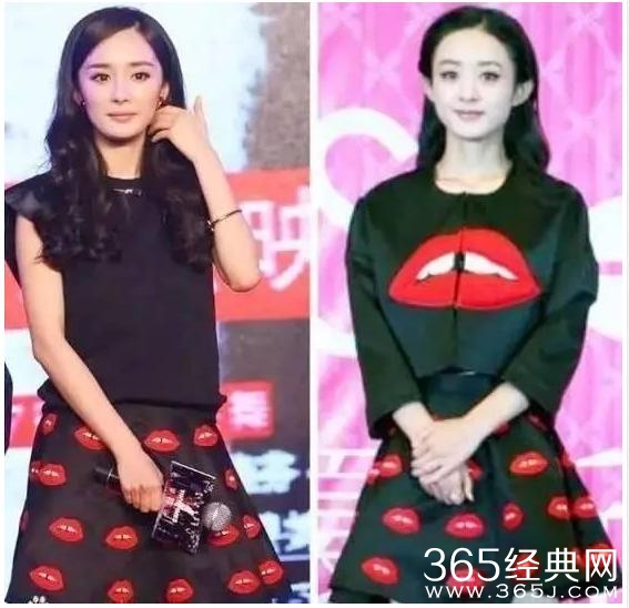 红唇A字裙,杨幂的略显成熟端庄气息,不同的是,赵丽颖的上身长袖款式圆领大红唇标案,便是多了几分俏皮少女感