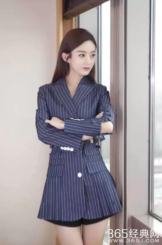 赵丽颖出任公司副总裁。她身穿CHRISOUBYDAN 2017春夏系列藏蓝色条纹西服百褶裙,下搭黑色短裤,脚踩Stuart Weitzman红色一字带高跟鞋,造型干练又帅气,果然有Boss风范!