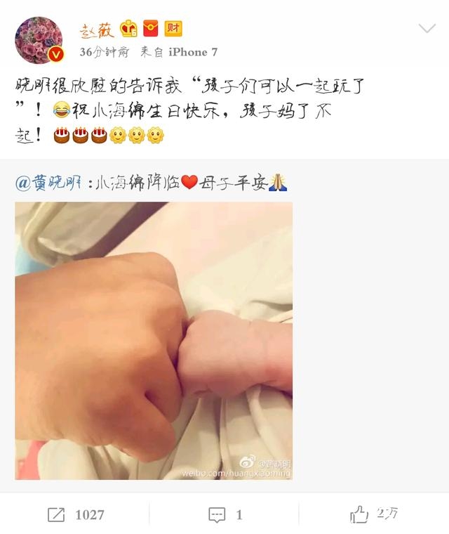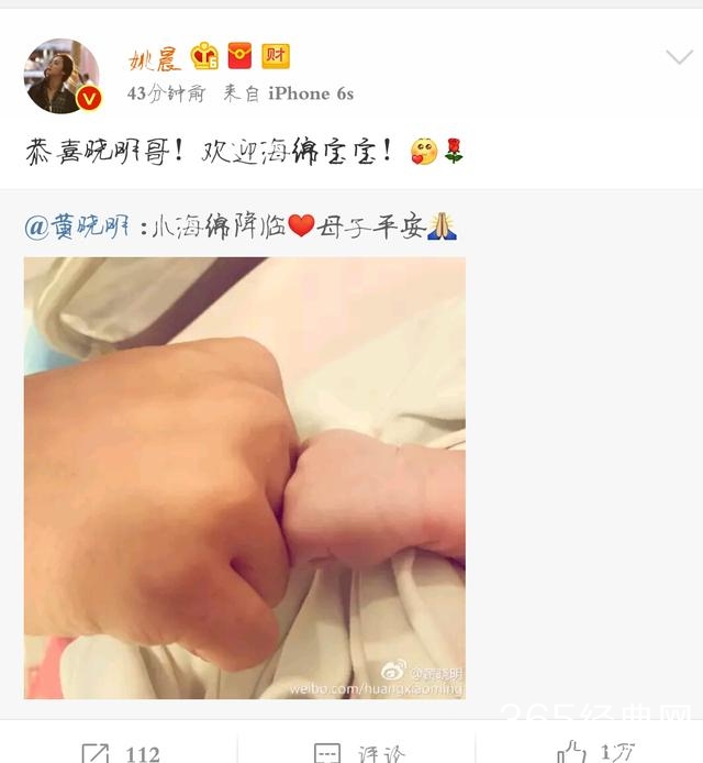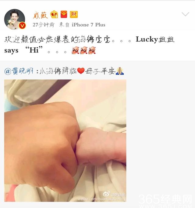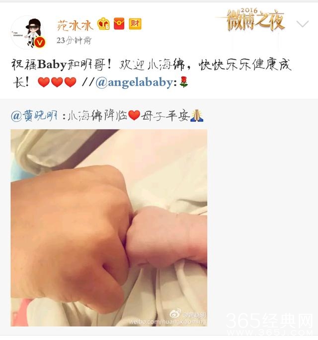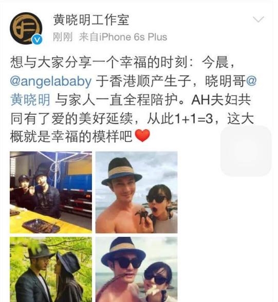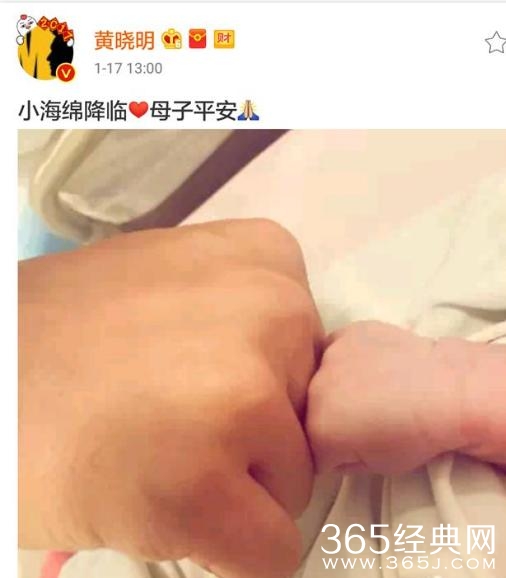 17日凌晨,baby顺利生下男宝宝,全程晓明哥及家人一直陪在杨颖身边,之后黄晓明通过微博与大家分享这美好时刻。