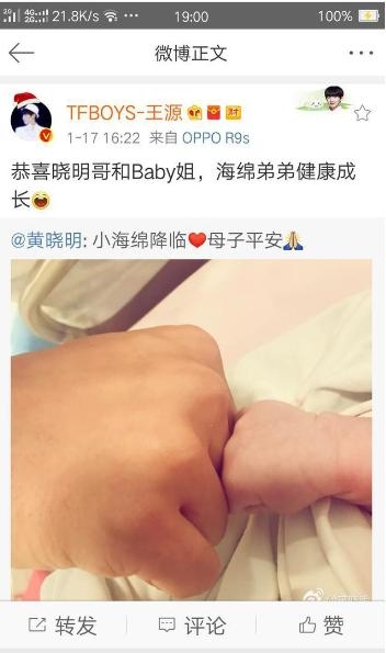 恭喜anglebaby和黄晓明喜得一子,昨天baby 香港顺产生子小海绵,黄教主及双方家人提前抵港并全程陪护母子左右,真是个有心人。