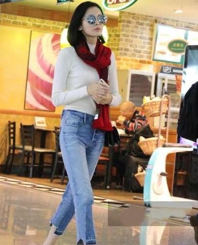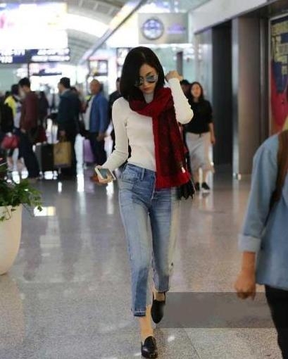 古力娜扎上身白色打底毛衣,下身九分牛仔裤,大红色的复古围巾让整个人显得神采奕奕的。但细心的吃瓜群众应该发现古力娜扎裤子那里是什么呢?还有这走路的姿势,要不要这么扭捏呢?让人看起来怪怪的。