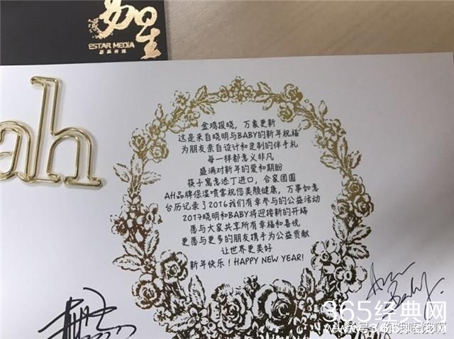 新年之际黄晓明夫妇还专门做了礼盒送给媒体朋友,AH的标志跟他们婚礼请柬上的是一样的。