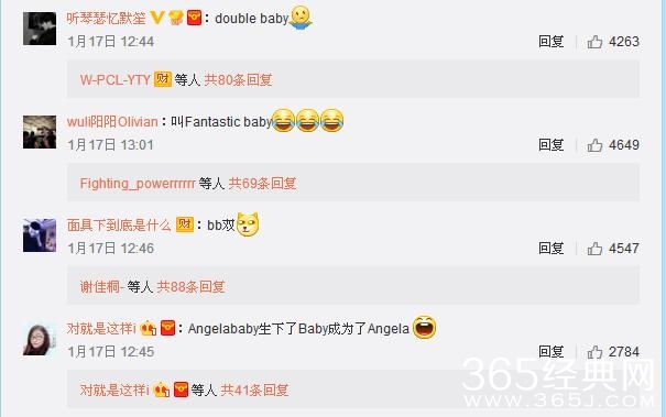 网友们也是各种脑洞大开,什么baby的二次方、BY2、double baby、Fantastic baby、bb双等等,还有网友说Angelababy生下了Baby就成了Angela,估计baby看到也是无语了吧。