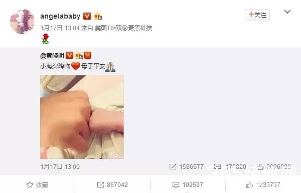 黄晓明和angelababy的爱情结晶“小海绵”于1月17日顺利降临,绝对是这几天娱乐圈的大事儿。