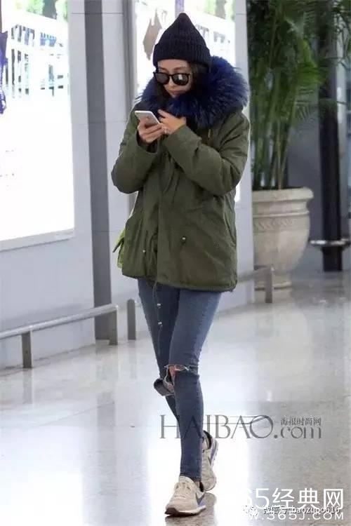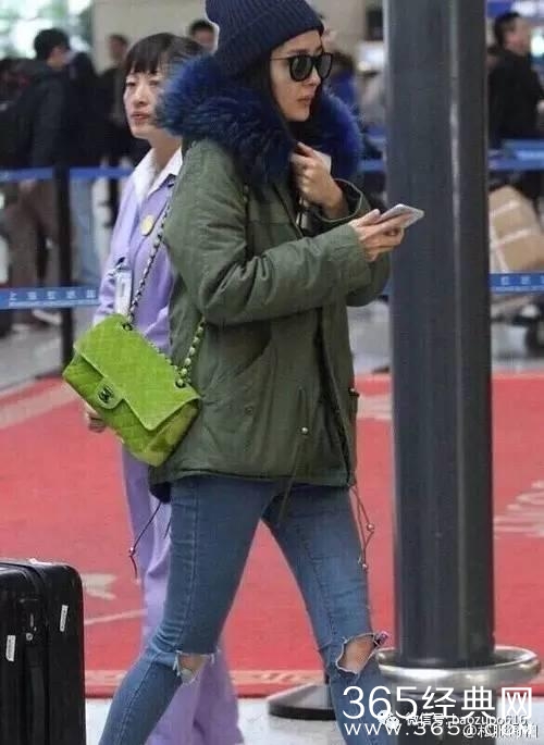 在这之前,大幂幂还穿过一件绿色的大衣,带有郊狼毛皮,售价2万+