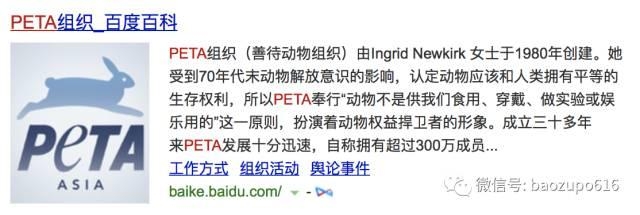 话又说回来,杨幂支持的这个PETA是个什么组织呢?度娘告诉我们: