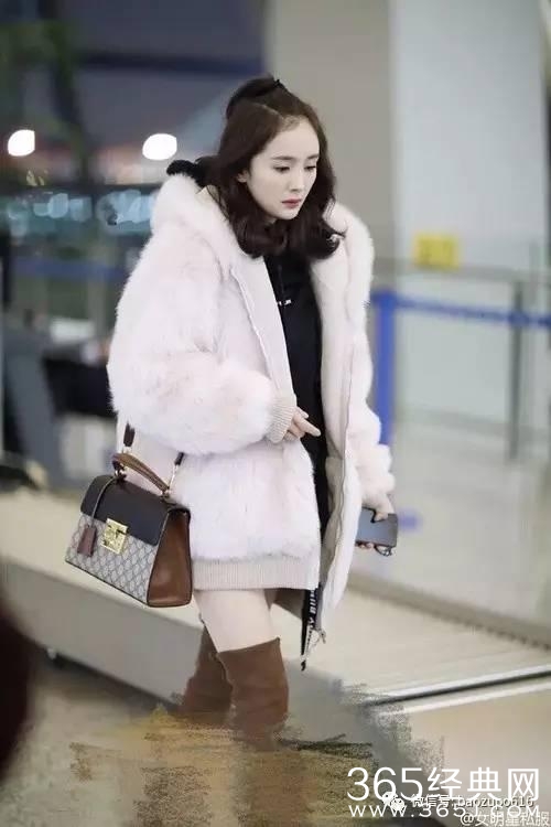 她的闺蜜唐嫣,选择了粉色毛领,售价2万9,比杨幂的贵一些。