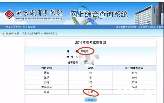 除此之外,关晓彤还是一个大学霸,她今年高考的时候就考了五百五十二的高分,这在北京地区上一个本科都足够了,她最后也是以文化课成绩第一的名次考上了自己喜欢的表演系。