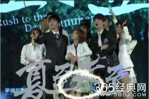 在夏至未至的发布会上,大家都在合影的时候,有网友发现小爽做了一个小动作。