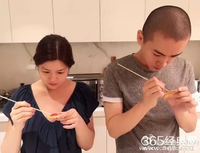 这张和陈晓做甜点的样子还是挺有孕味的,虽然纯素颜,但是作为准妈妈还是美出了自己的味道。