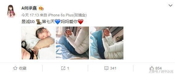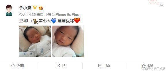而且还大大方方的晒出儿子证明照。只见宝宝头发浓密,单眼皮,大家看看像不像父母呢?