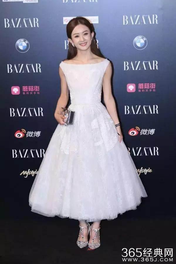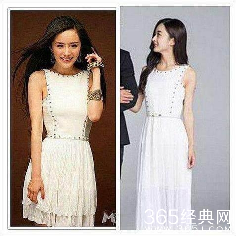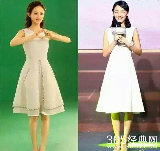 2、同样一条小白裙,赵丽颖选择及膝的长度,优雅得体;周冬雨穿过膝裙子,显腿短!