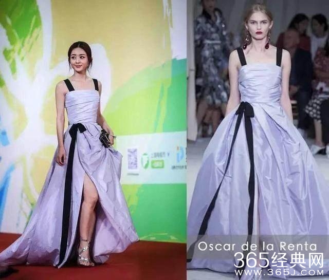 2016.06.10白玉兰颁奖晚会红地毯上,赵丽颖身穿Oscar de la Renta的淡紫色长裙,高开叉的设计大秀美腿,整体看上去清新又典雅。