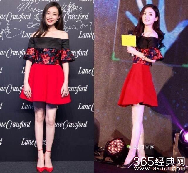 倪妮VS赵丽颖撞衫,红色一字上衣搭配半裙,赵丽颖头发微卷,看起看来更具有女性魅力!