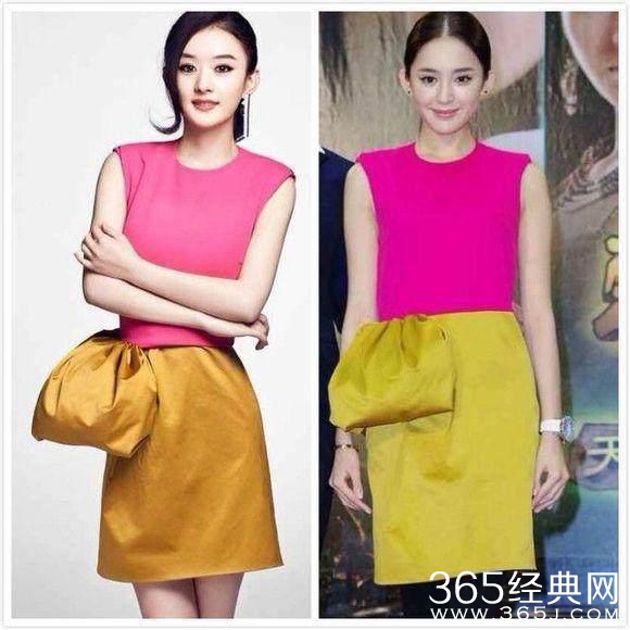 2、赵丽颖穿杨幂几年前就穿过的款式。赵不仅被吐槽撞衫还被吐槽撞脸。不止是在礼服上;就连平时的街拍或者电视剧情的服装都能撞,真是巧啊!