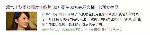 周冬雨的经纪人赵小姐还在朋友圈里秀了福利:一台价值数十万的保姆车,既是一部分年终奖又是经纪人的生日礼物。