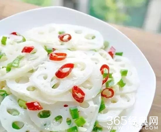 5、炒一会儿加入盐、葱花、少许水,再大火翻炒,见藕片四周芡汁式的汤汁稍一变色就起锅。这样一盘清清爽爽一清二白的清炒无丝藕片就新鲜出炉了。