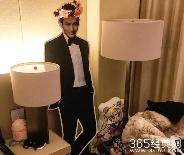 angelbaby在社交账号上曝光的家里一角的照片,照片下写“home”,床头柜旁边赫然摆着老公黄晓明的人形牌,虽然只是展示了豪宅的冰山一角,但也看的出来家装风格是华丽范儿