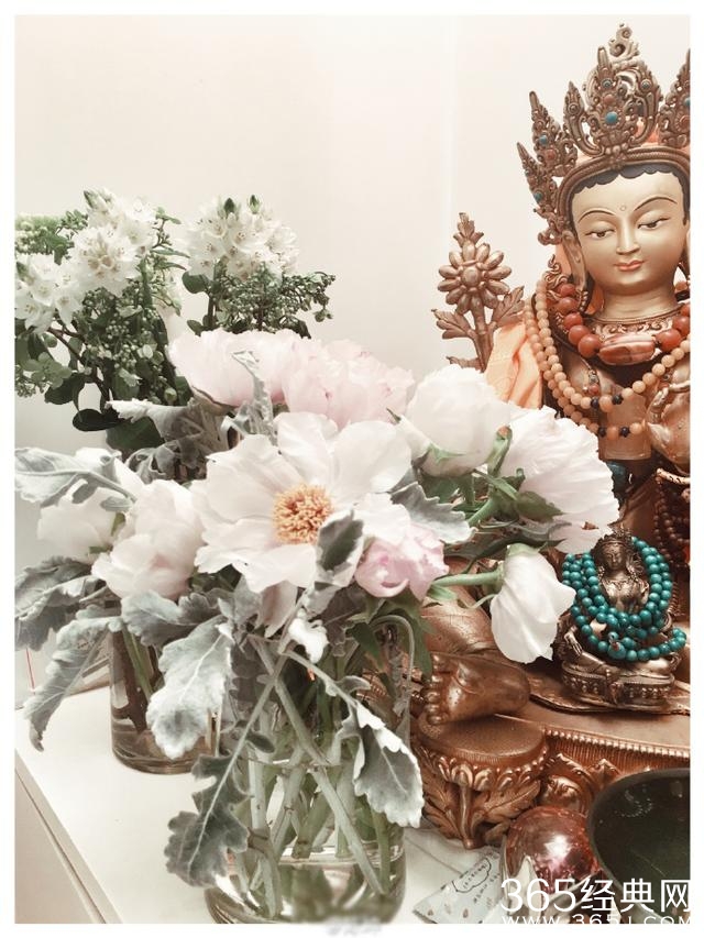 照片中,陈坤家里充满艺术氛围,佛像前供着鲜花,休息区摆满了书籍,衣帽架也是一只造型独特的马,显示出陈坤的艺术品位。家居装修不是常见的土豪风,质朴中充满艺术腔调。