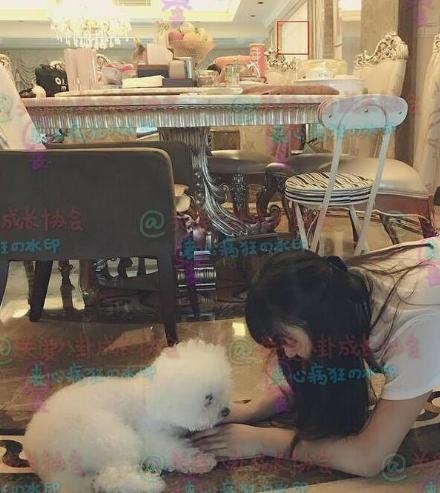 赵丽颖团队成员曾秀出了一张与小狗嬉戏的照片,疑似是在赵丽颖北京豪宅中,图中的家装可以看出与赵丽颖在微博上传的在居家照一致。赵丽颖家整间房间的装饰很华丽,又不失少女气息,桌连桌脚的雕花都十分的抢镜。
