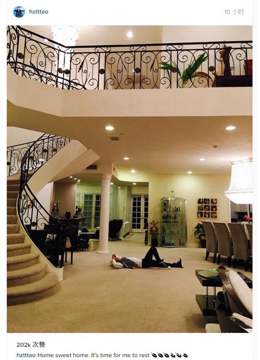 有网友po出黄子韬在某社交网站上晒出的豪宅,并感慨wuli韬韬的房子真是巨大无比。从照片中可以看到豪宅分为两层,十分宽敞,楼梯扶手为雕花设计,装潢虽然简约,但不难发现许多家具都花了心思。wuli韬韬躺在一楼地摊上,看起来十分惬意!